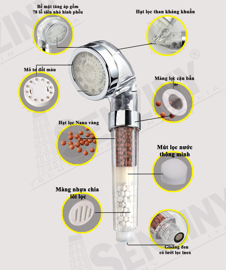 Các dòng sen vòi thông minh phiên bản Nano của Senziny (như Mix Love hay The Thor) được trang bị các hạt khoáng gốm (Nano Ceramic) ngay trong thân vòi. Các hạt này đóng vai trò như một bộ lọc mini, giúp khử clo dư, loại bỏ kim loại nặng và các tạp chất có hại. Khi sử dụng sen vòi, nguồn nước được làm sạch sâu, giúp bảo vệ làn da khỏi tình trạng khô ráp và giúp tóc chắc khỏe hơn.